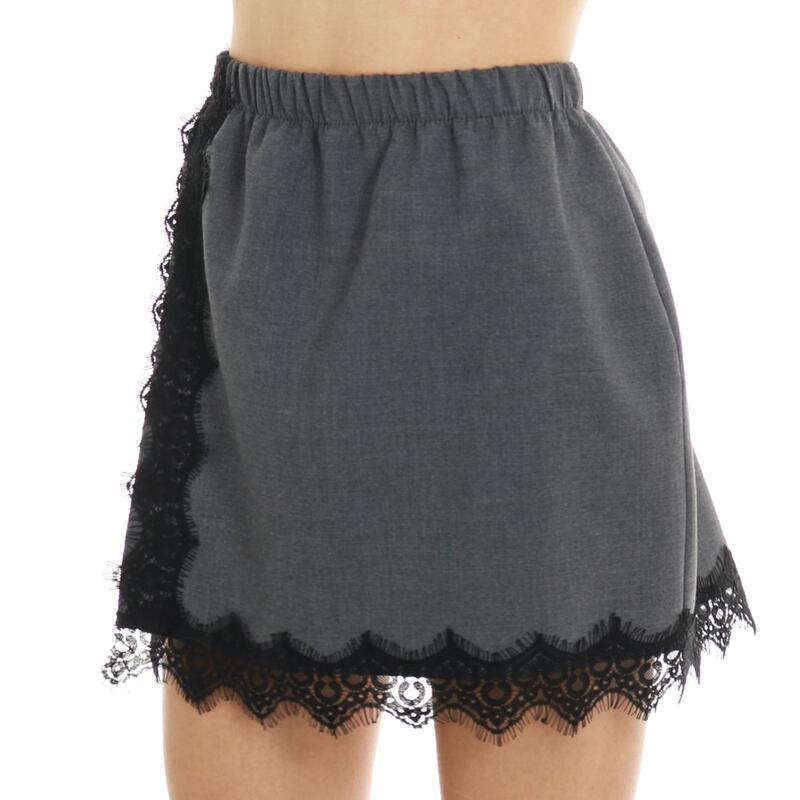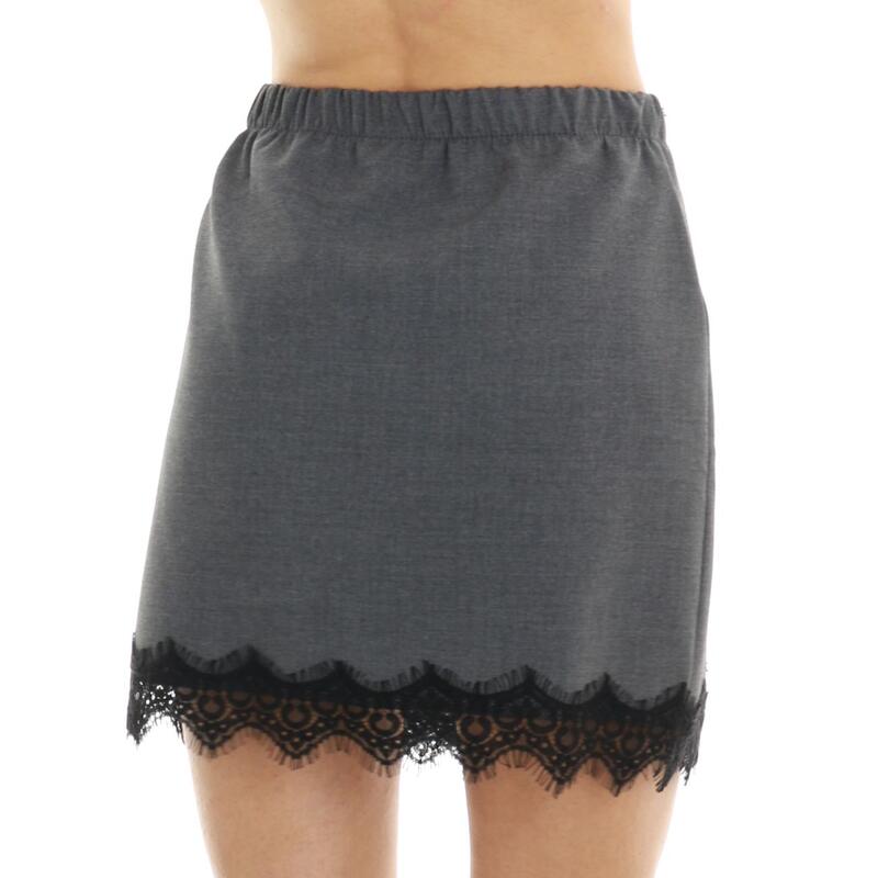 Mini gonna con inserti in pizzo, elastico in vita. Vestibilità regular.