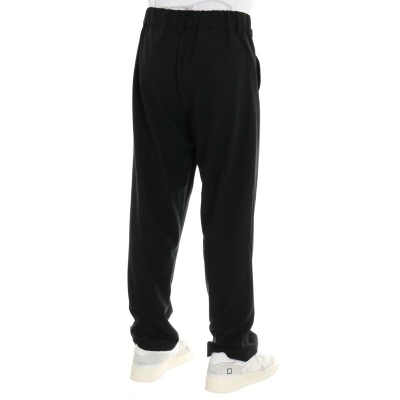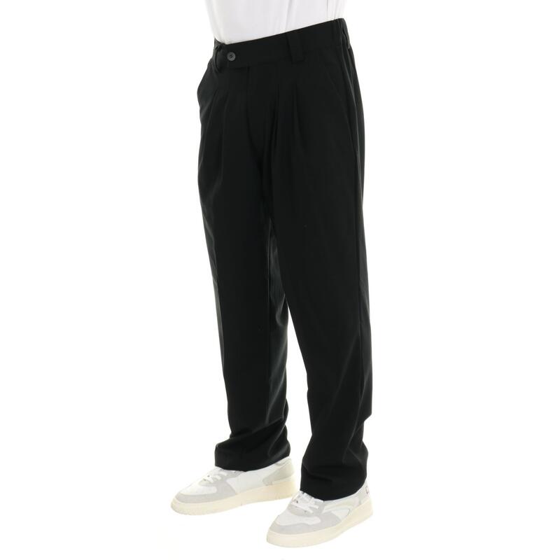 Pantalone con cavallo calato, vita media con pinces, tasche america, cinturino strutturato con passanti. Vestibilità regular.