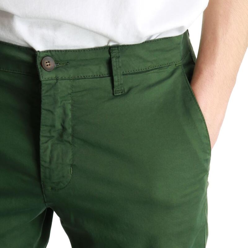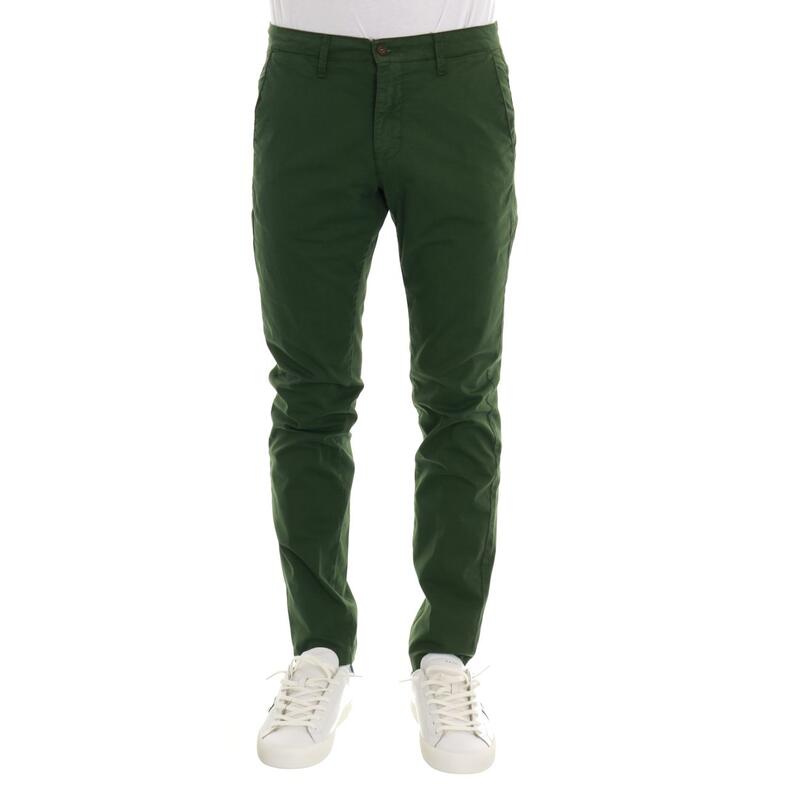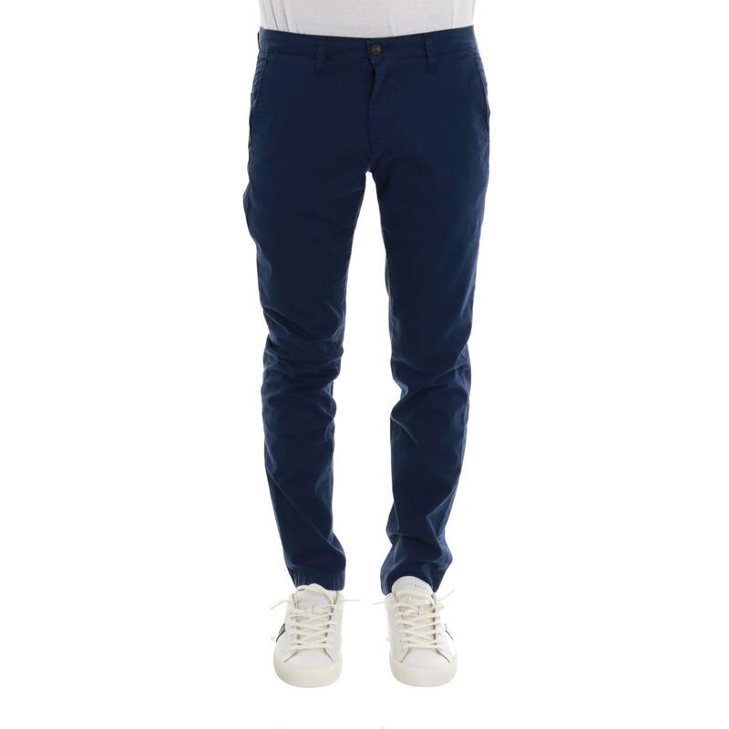 Pantalone chino stretch, vita media, tasche america, chiusura con bottone e zip. Vestibilità slim.
