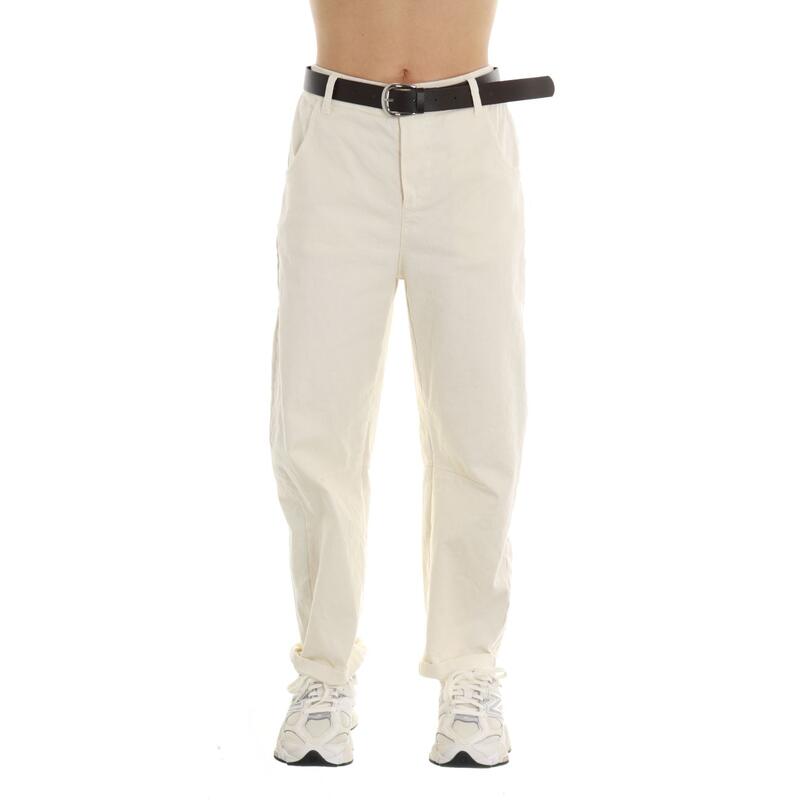 Pantalone stretch con cintura in vita ed elastico dietro. Vestibilità regular.