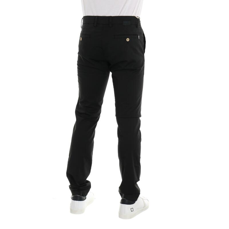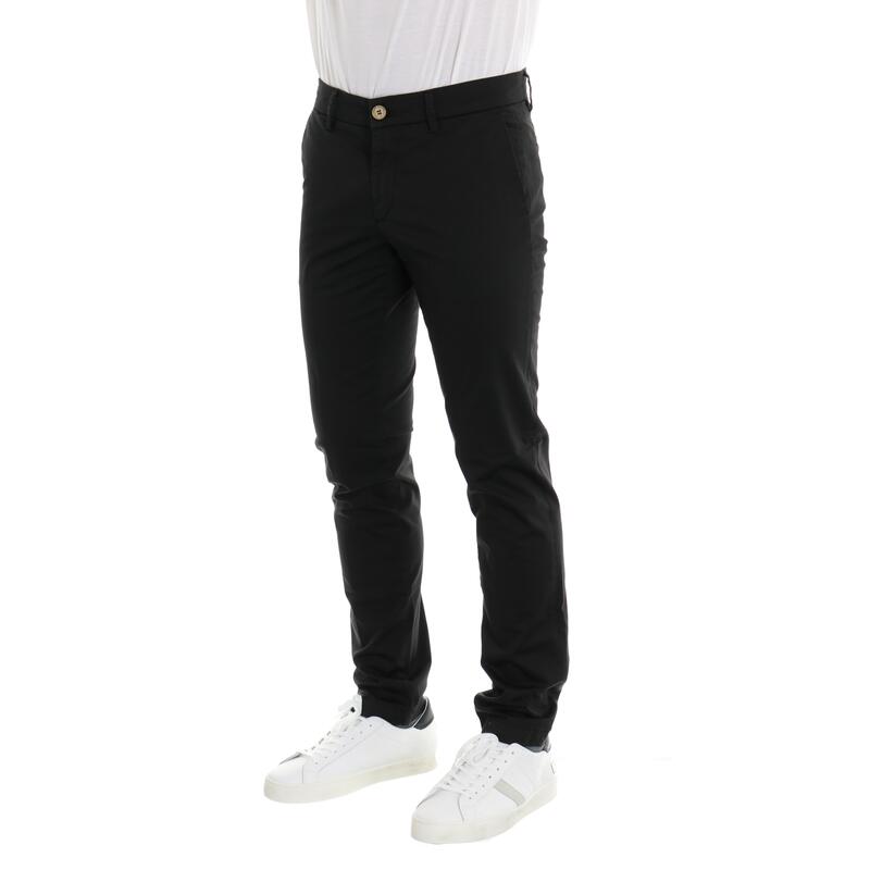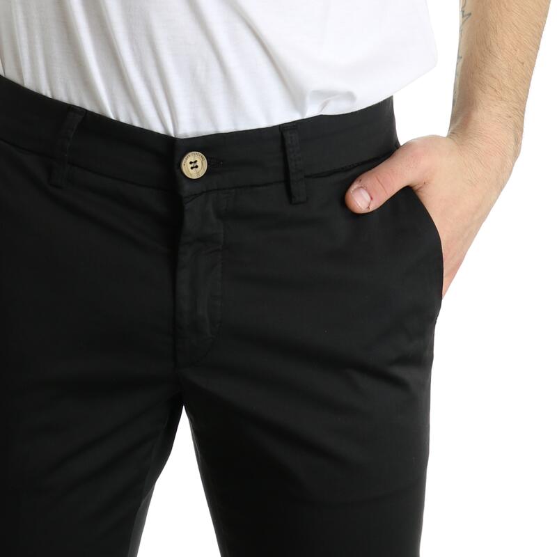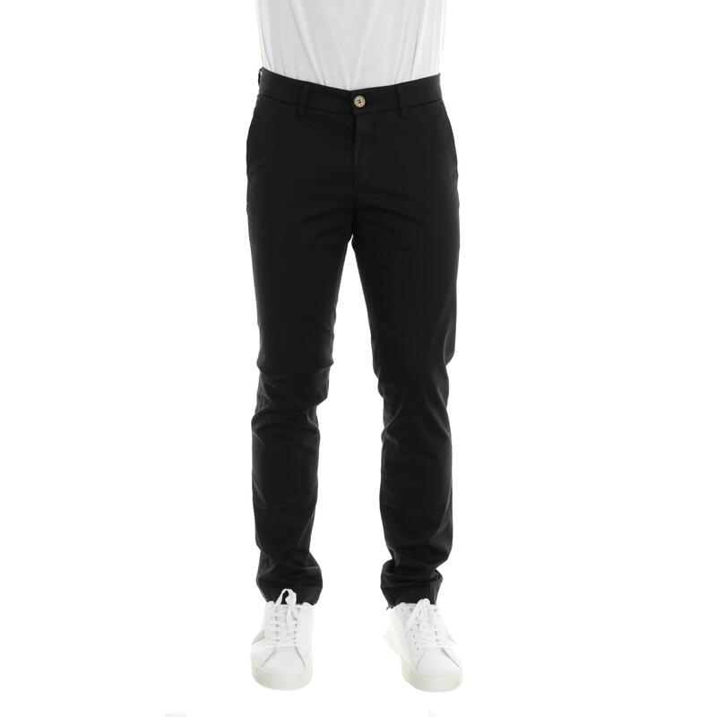 Pantalone in gabardina, vita regular, tasca america, tasche posteriori a filetto, chiusura con bottone e zip. Vestibilità slim.