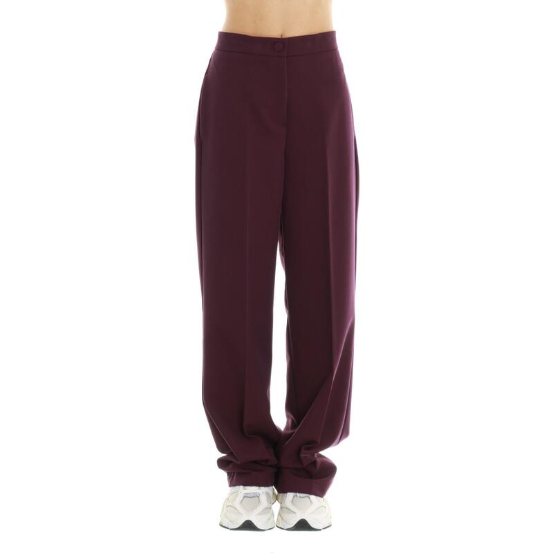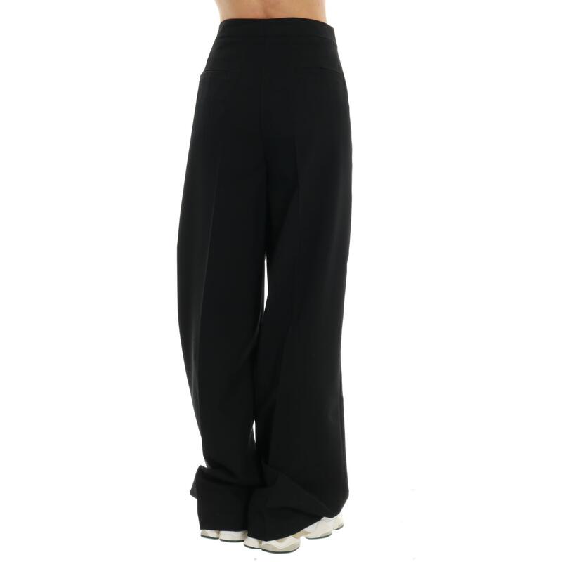 Pantalone a palazzo vita alta, tasche america. Vestibilità regular.