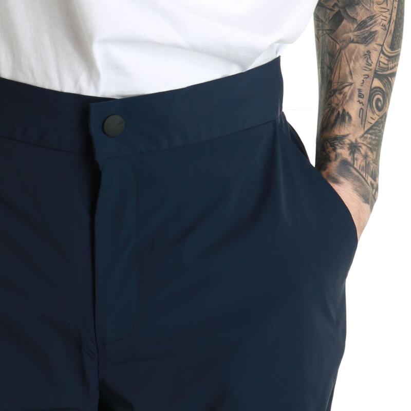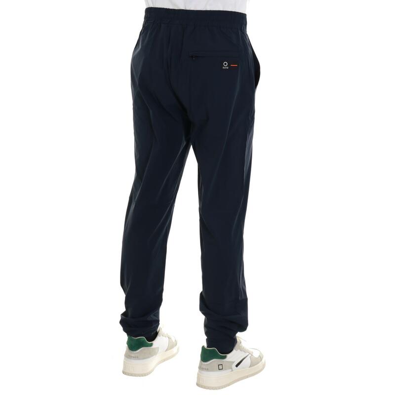 Pantalone in tessuto tecnico elasticizzato, vita media, tasche america. Vestibilità regular.