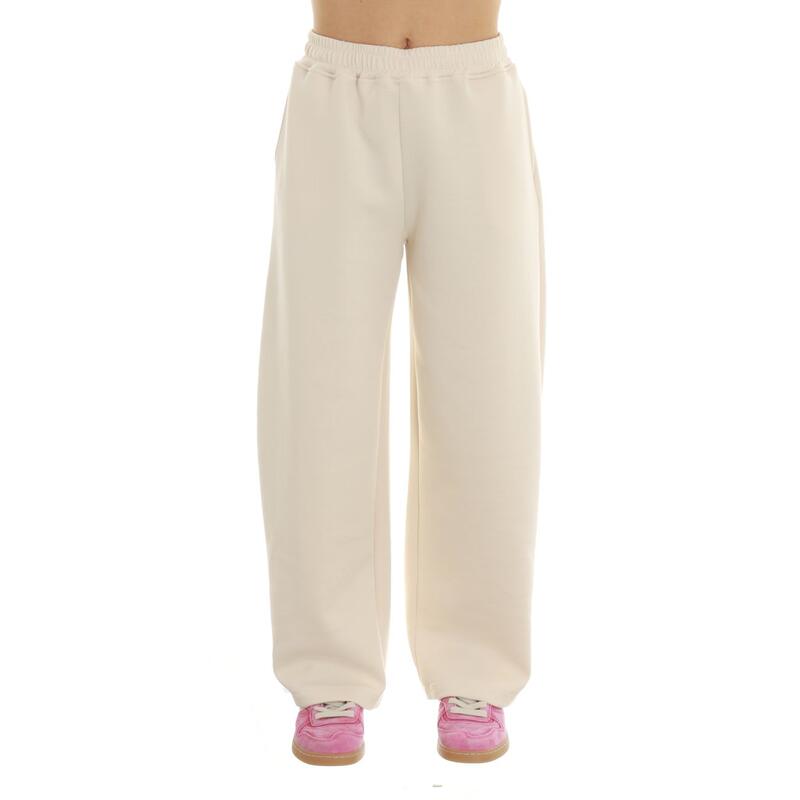 Pantalone tuta a palazzo, vita meta con elastico in vita, tasche a filo. Vestibilità regular.