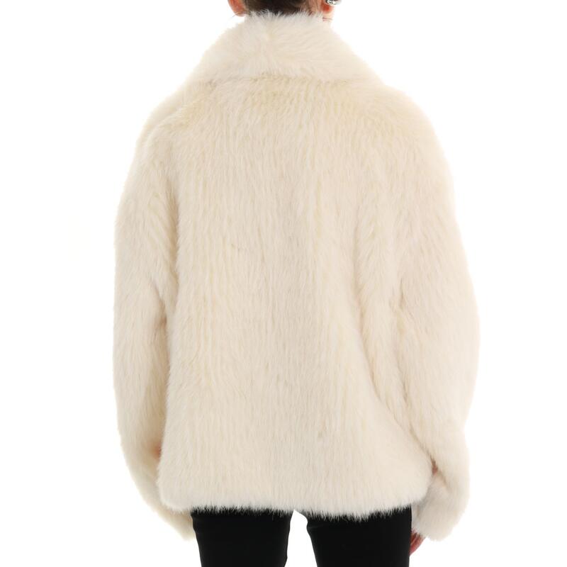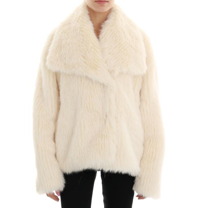 Ecopelliccia panna, chiusura con bottoni. Vestibilità regular.