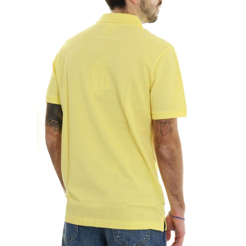 Polo mezza manica, tinta unita, due bottoni, mini logo ricamato frontale. Vestibilità slim.