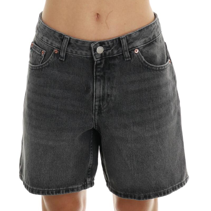 Jeans corto non stretch, vita media, salpa a contrasto, chiusura con bottone e zip. Vestibilità regular.