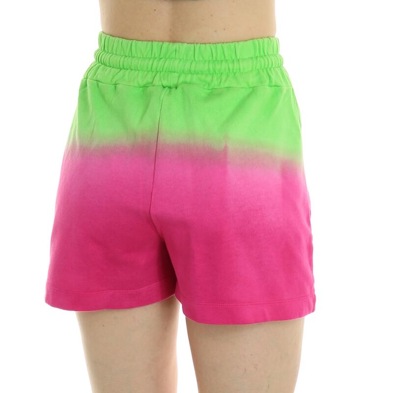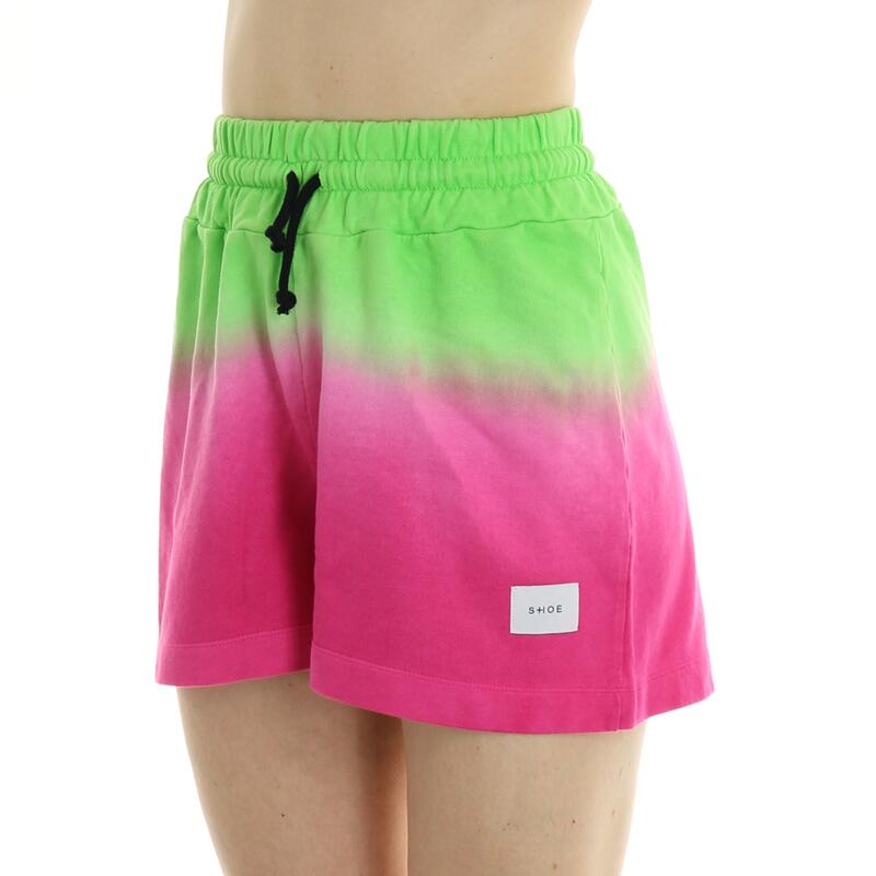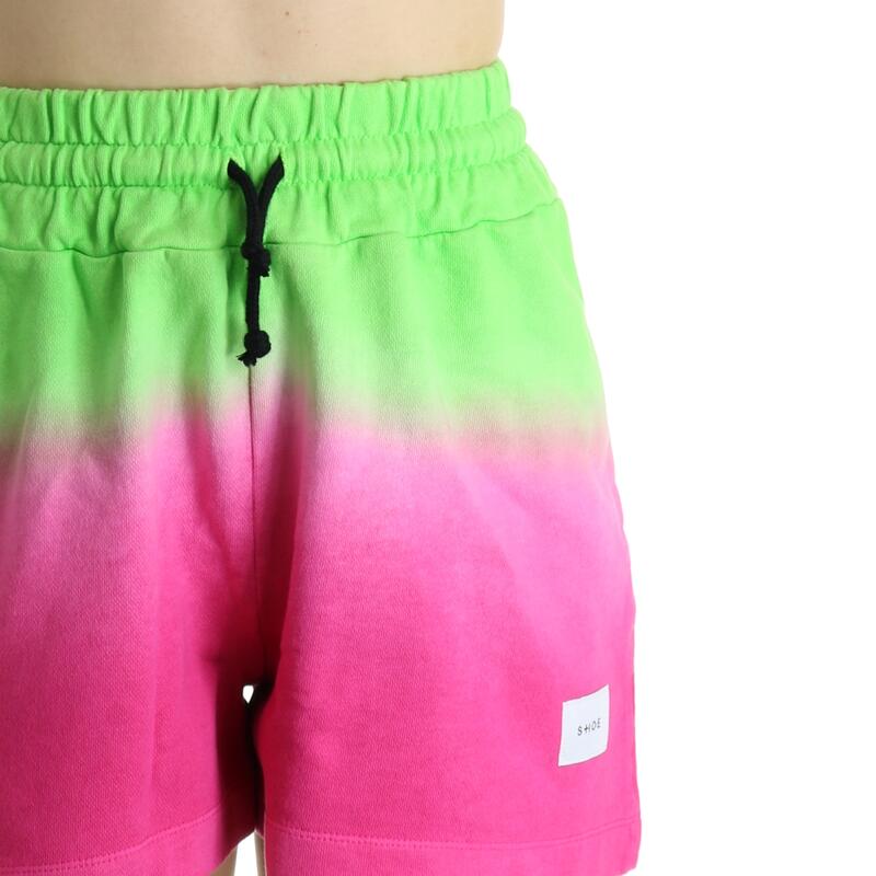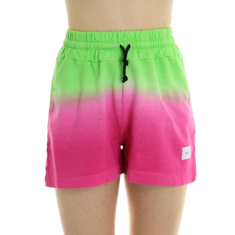 Pantalone corto in felpa, fantasia bicolor, vita alta con elastico. Vestibilità regular.