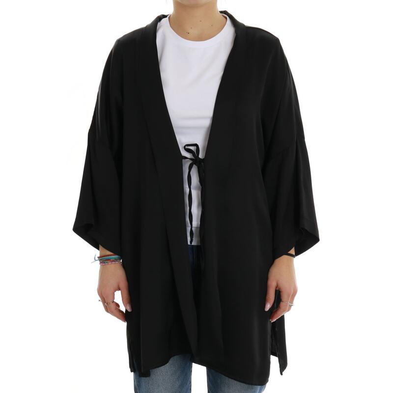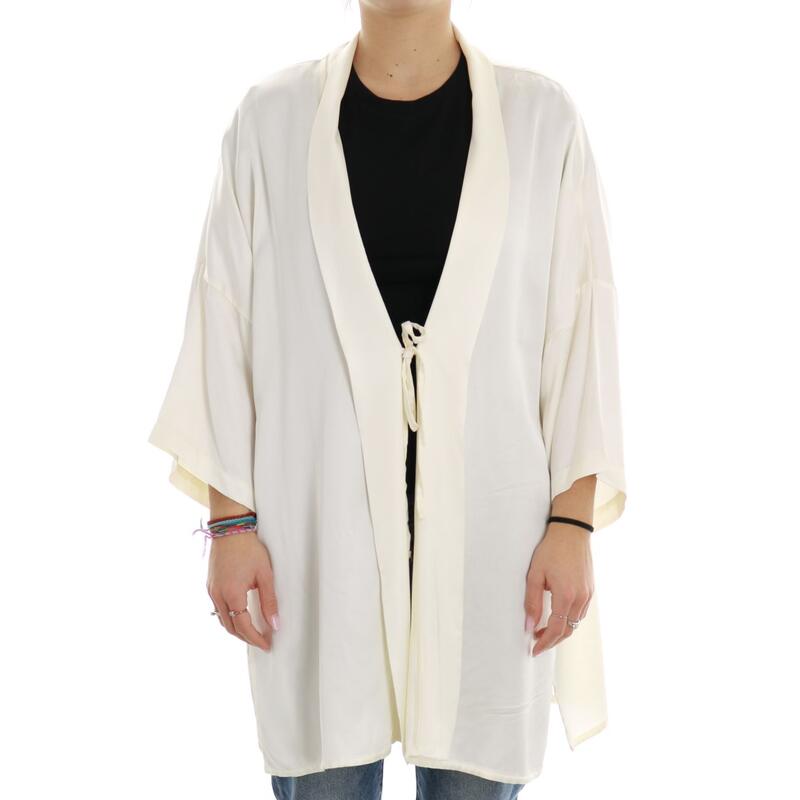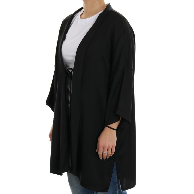 Spolvero aperto con laccetto frontale, manica ampia 3/4. Vestibilità regular.