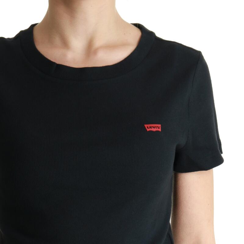 T-shirt crop a costine con mini logo. Vestibilità slim.