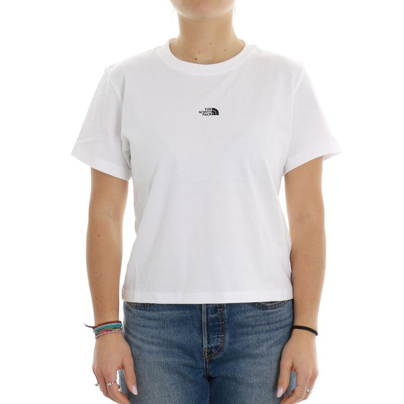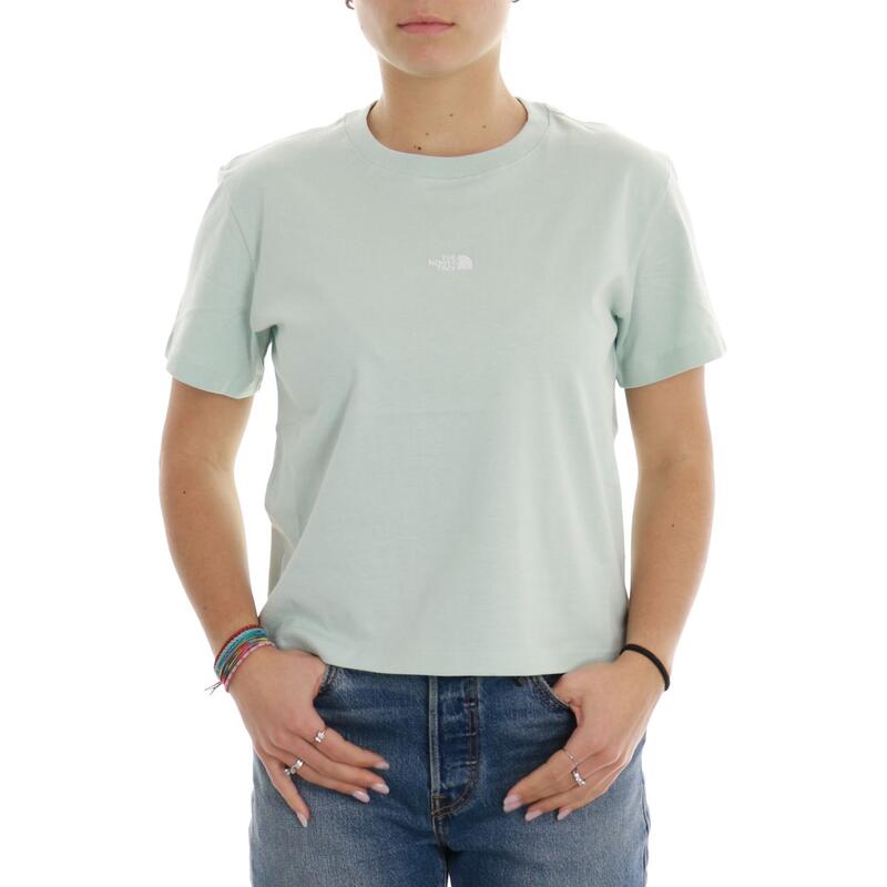 T-shirt crop mezza manica con logo ricamato frontale. Vestibilità regular.