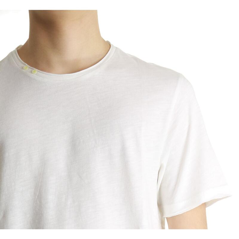 T-shirt mezza manica in cotone fiammato, bottoncini sul collo. Vestibilità slim.