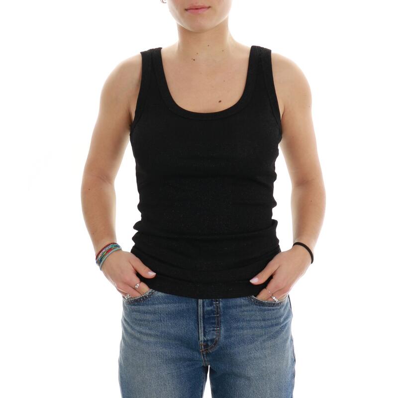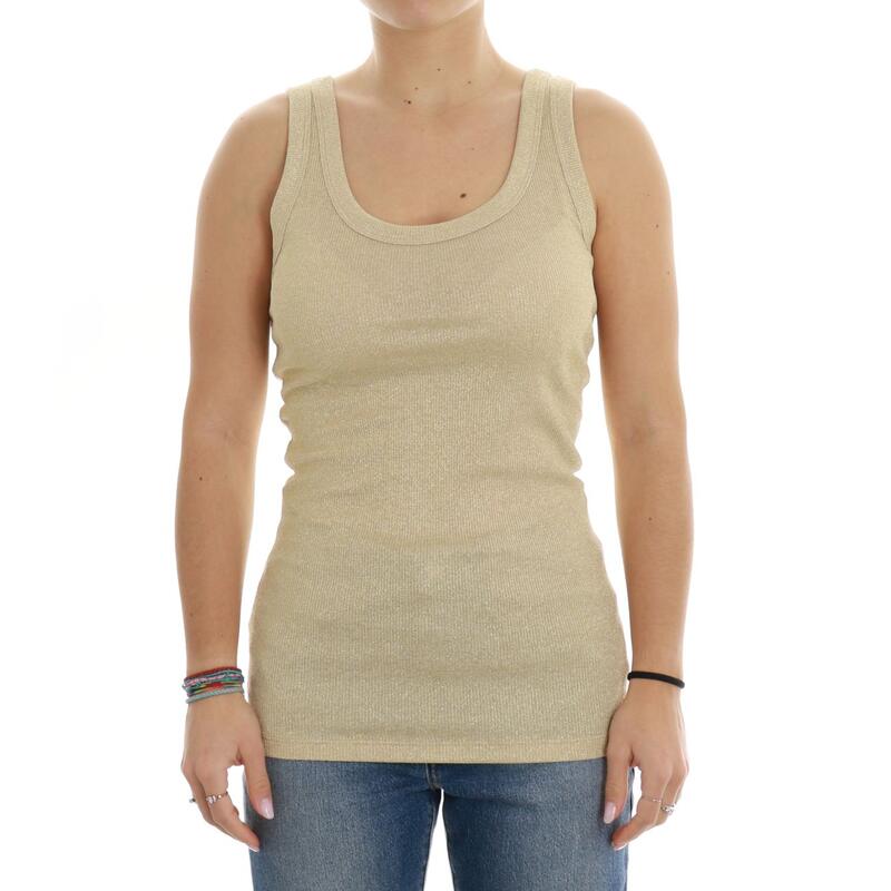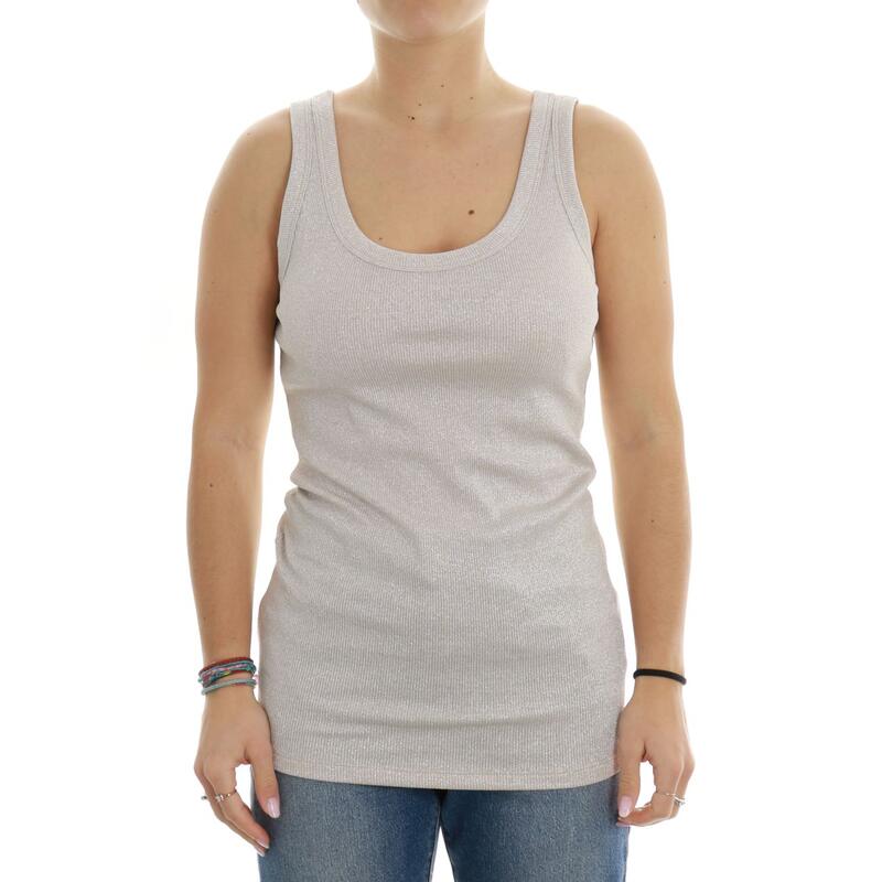 Top a costine in lurex, girocollo. Vestibilità slim.