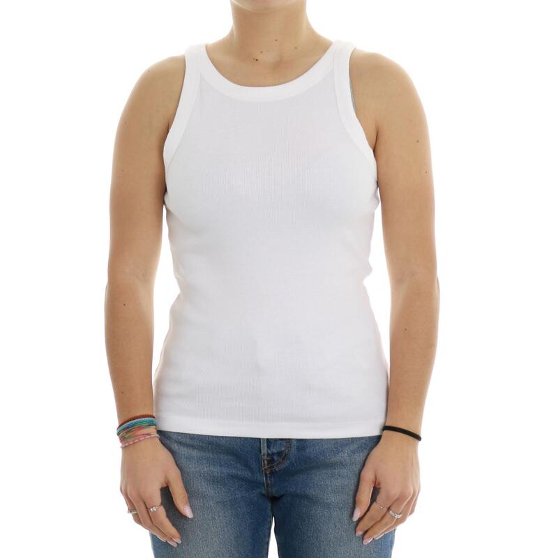 Top a costine girocollo, tinta unita, mini logo ricamato. Vestibilità slim.