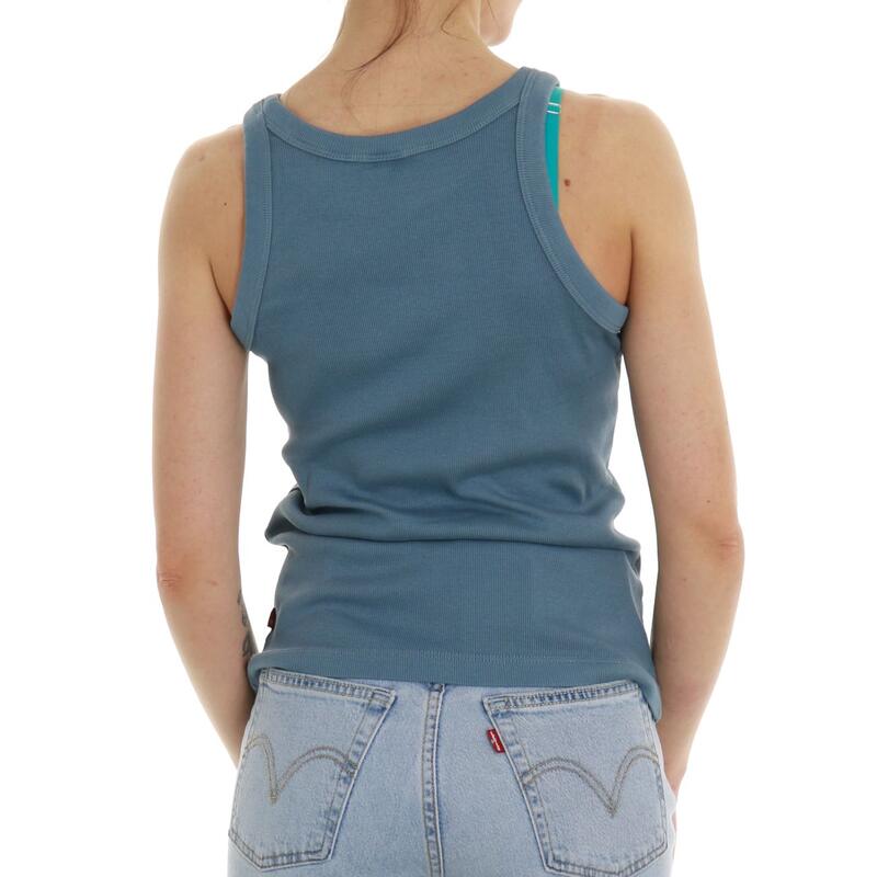 Top a costine girocollo, tinta unita, mini logo ricamato. Vestibilità slim.
