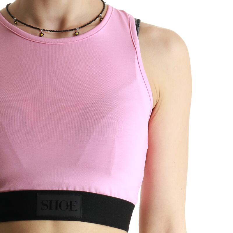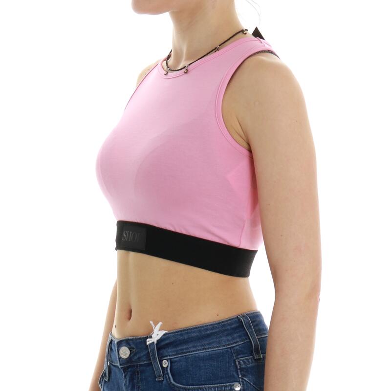 Crop top stretch con balza elastica logata. Vestibilità slim.