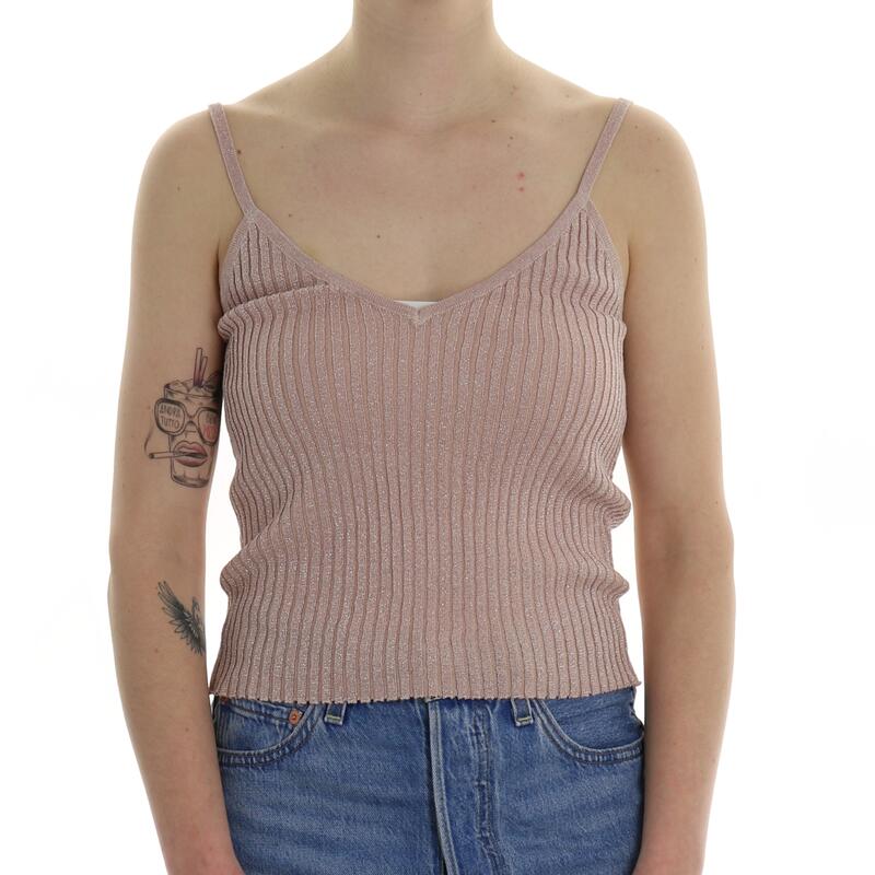 Top spallino fine, in maglia a costine, scollo a V. Vestibilità slim.