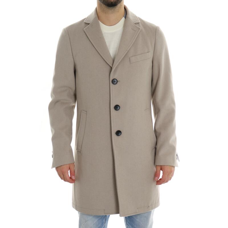 Cappotto monopetto, rever classico, tinta unita, spacco dietro. Vestibilità slim.