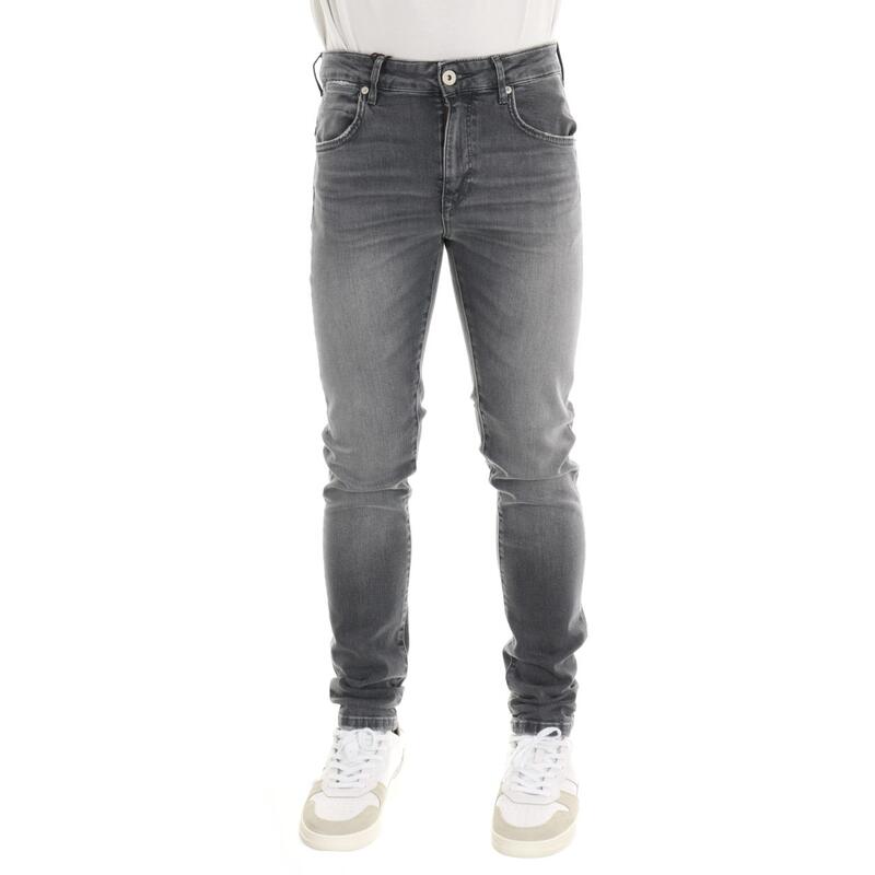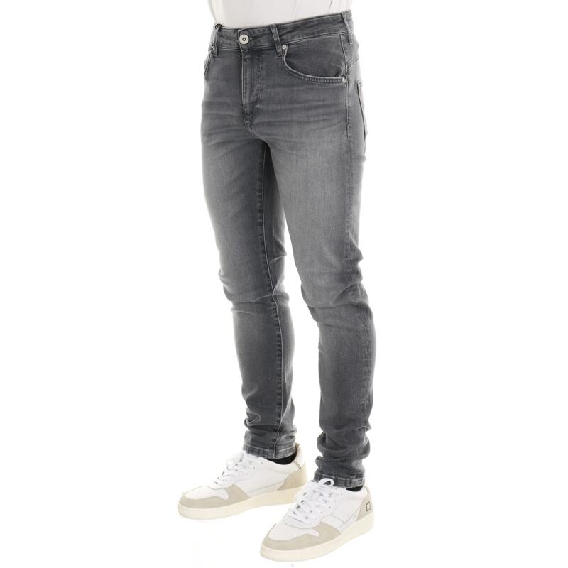 Jeans stretch lavaggio grigio, vita media, salpa a contrasto, chiusura con zip e bottone. Vestibilità skinny.