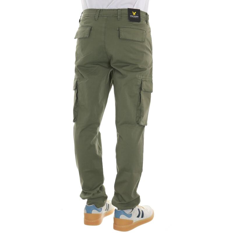 Pantalone in cotone stretch con tasche laterali, vita media. Vestibilità regular.