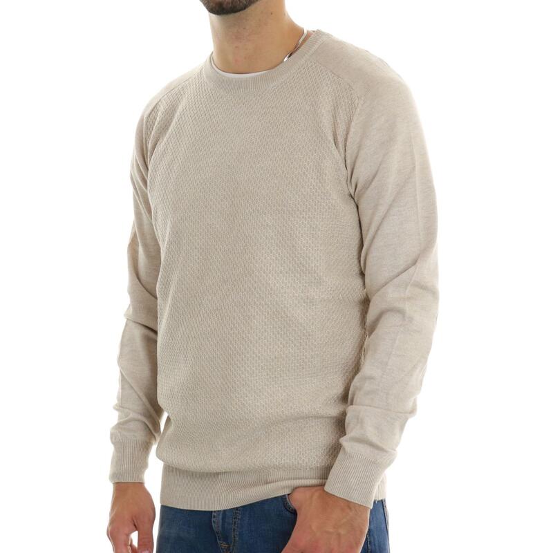 Maglia girocollo in misto viscosa, fantasia in rilievo tono su tono. Vestibilità regular.