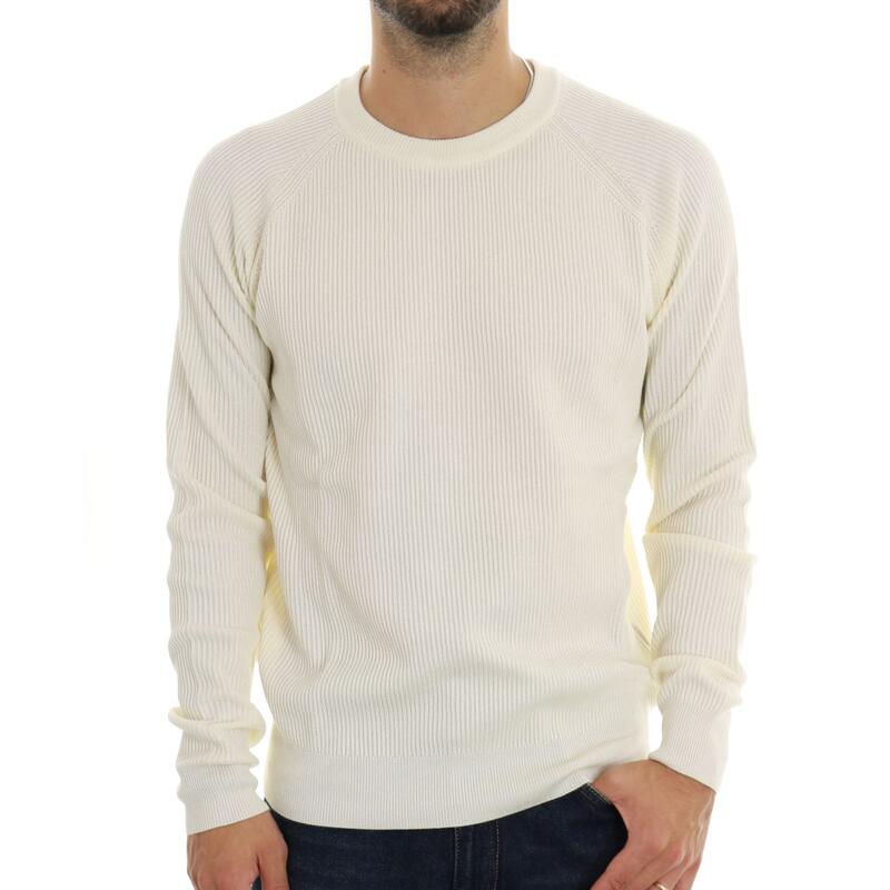 Maglia girocollo in fantasia righe tono su tono, manica raglan. Vestibilità regular.