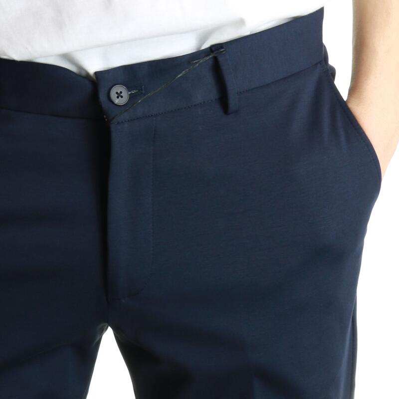 Pantalone stretch in punto milano, vita media. Vestibilità slim.