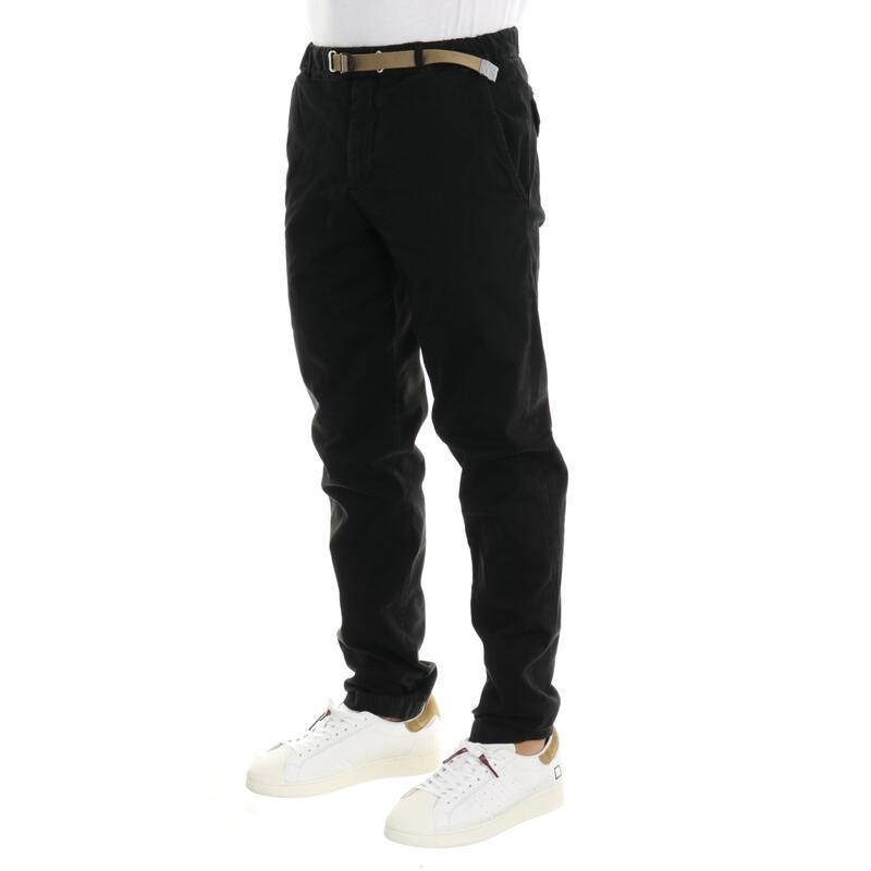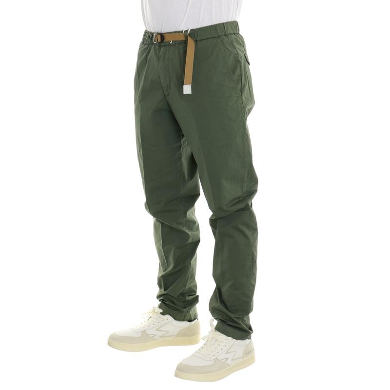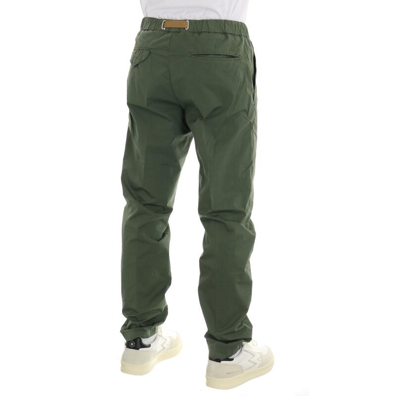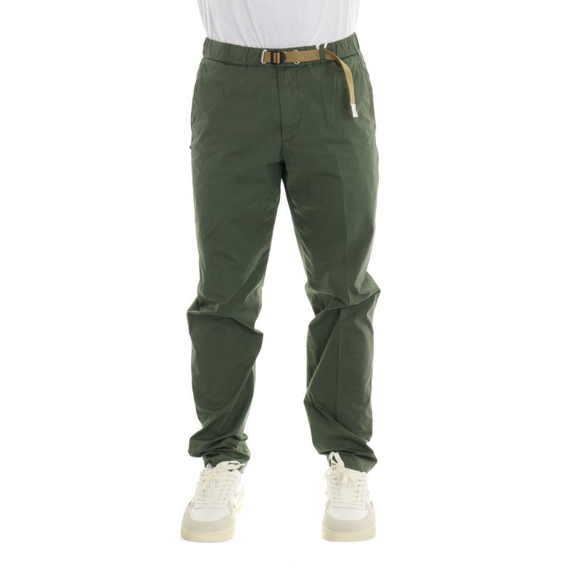 Pantalone in cotone elasticizzato, vita media con elastico e cintura, tasche america. Vestibilità regular.