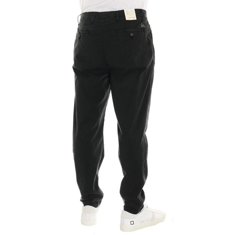 Pantalone cavallo calato, vita media con laccio. Vestibilità regular.