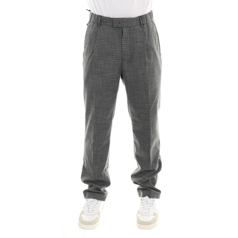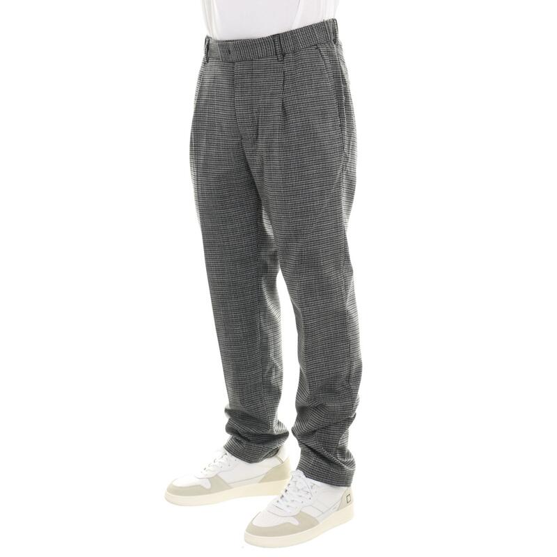 Pantalone con pinces e vita media, in fantasia check, tasche america. Vestibilità regular.