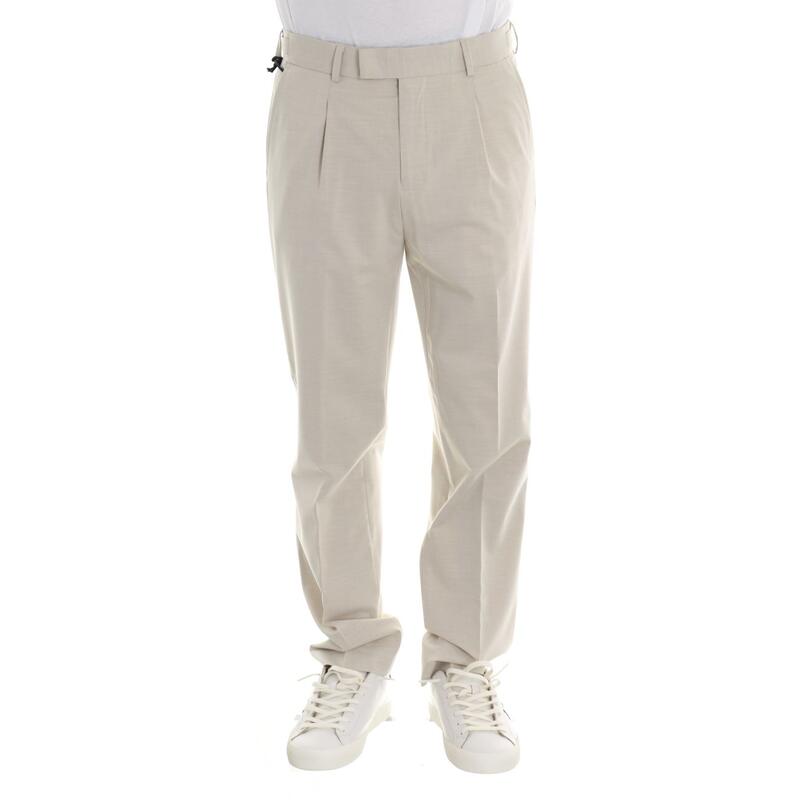 Pantalone con pinces, tasche america, vita media. Vestibilità regular.