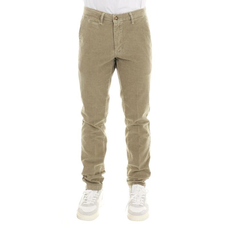 Pantalone in velluto stretch microfantasia tono su tono, vita media, tasche america. Vestibilità regular.