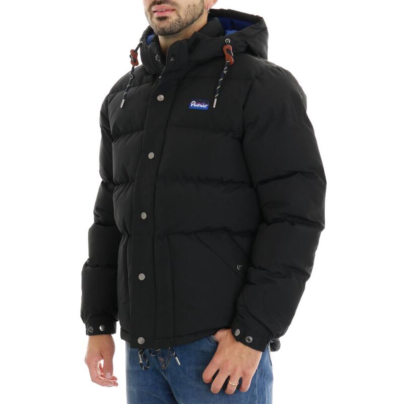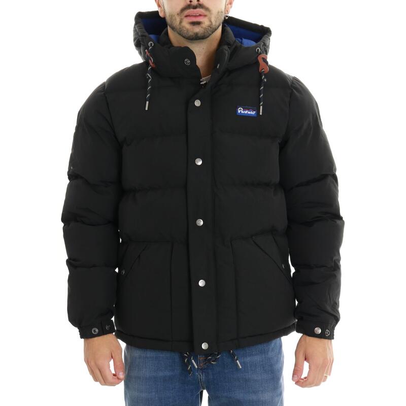 Giubbotto imbottito in ecopiuma, zip coperta, tasche, logo ricamato. Vestibilità over.