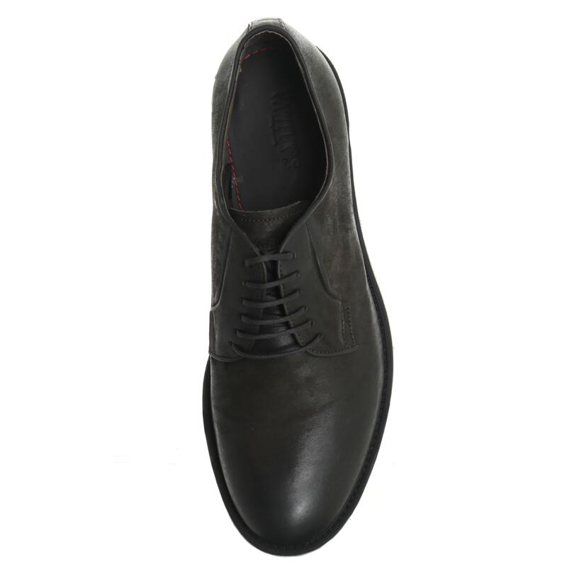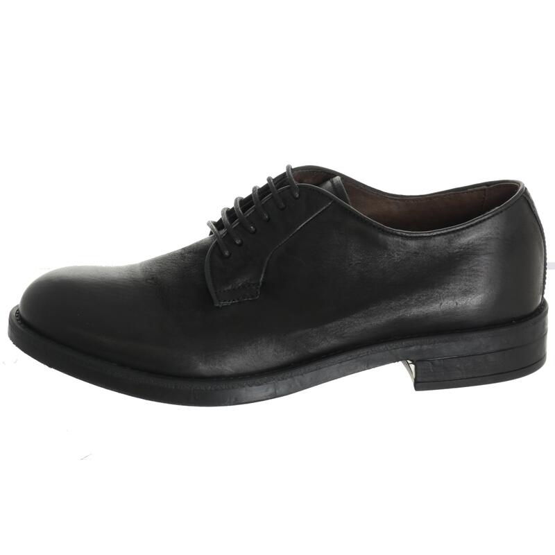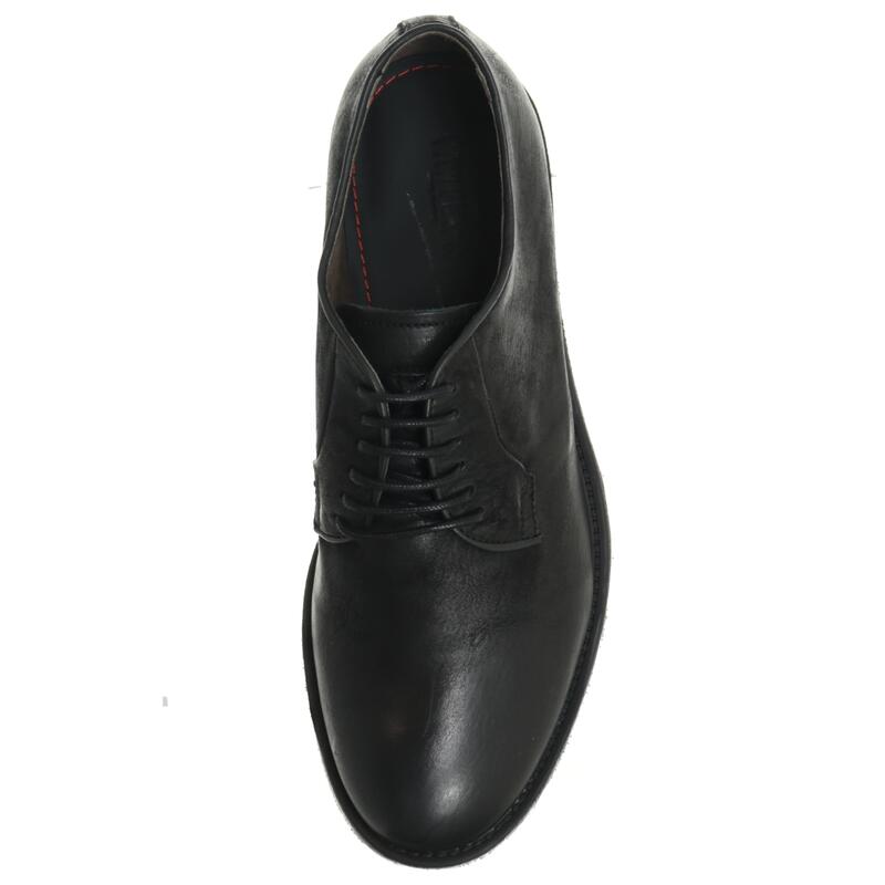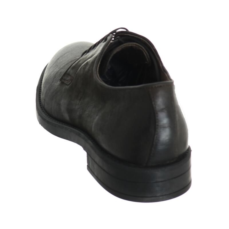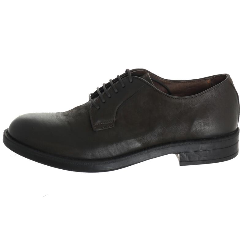 Scarpa stringata in pelle invecchiata con suola in cuoio cucita e antiscivolo in gomma, calzata abbondante.