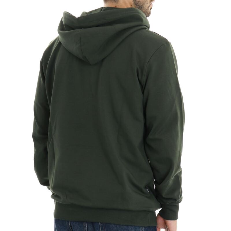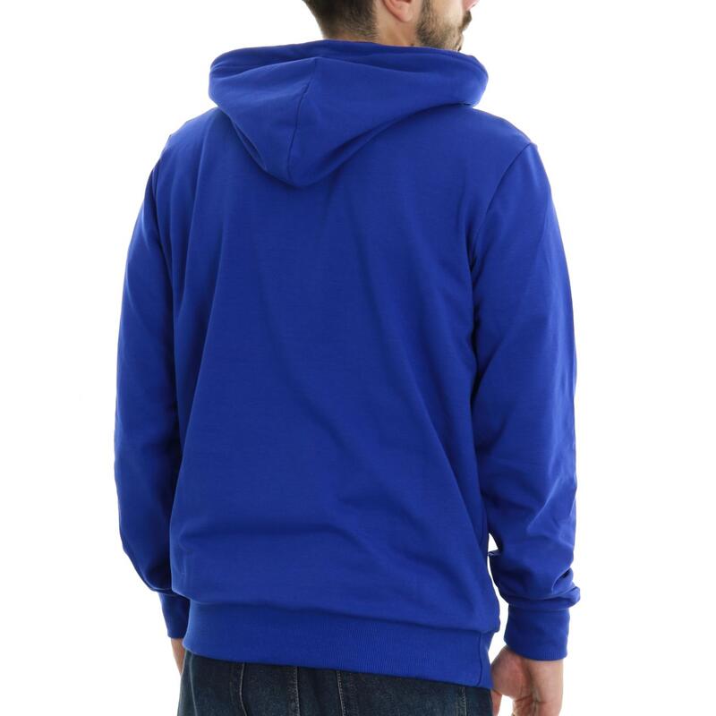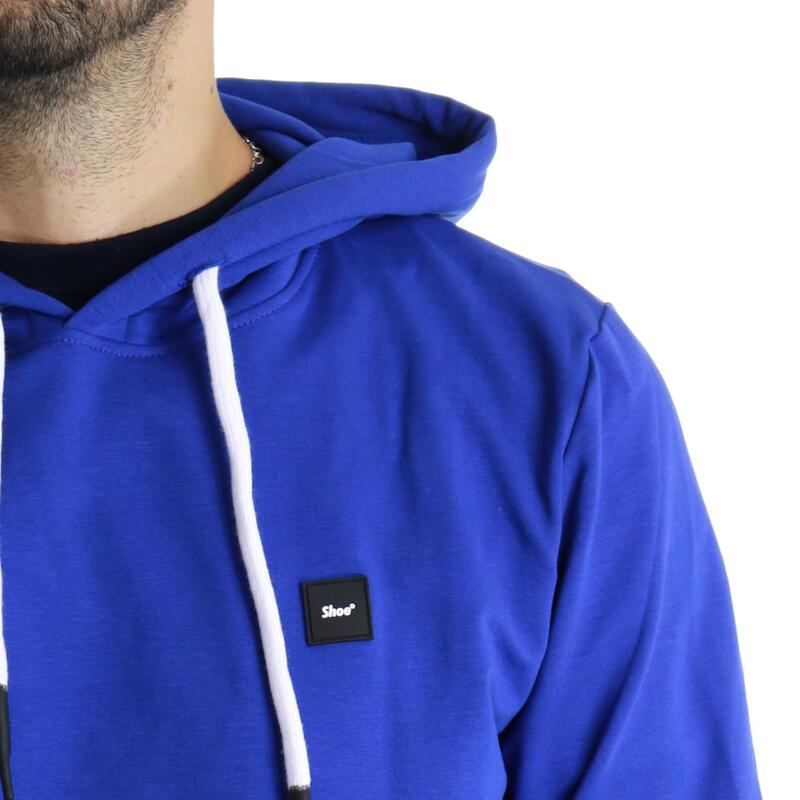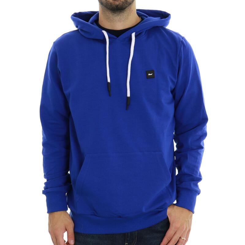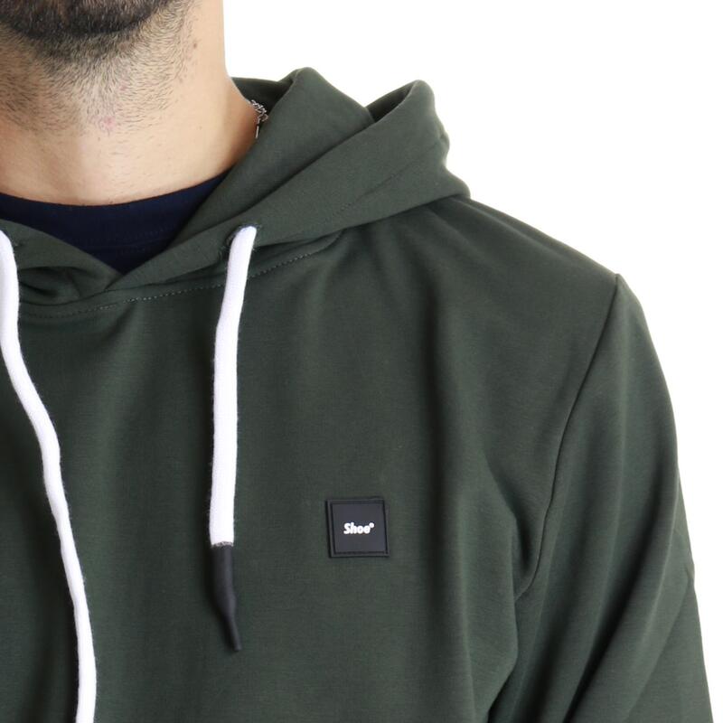 Felpa chiusa con cappuccio, tinta unita, logo patch frontale. Vestibilità regular.