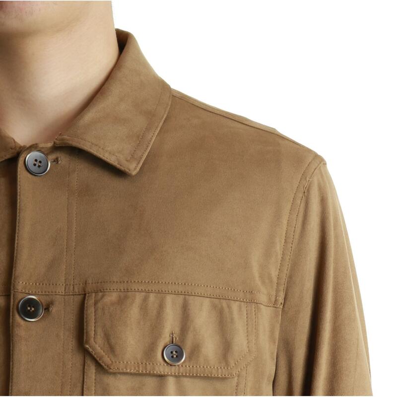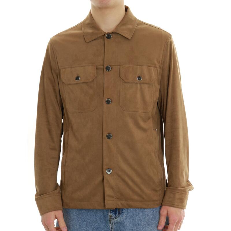 Giubbotto in ecopelle scamosciata, modello camicia con tasche. Vestibilità regular.
