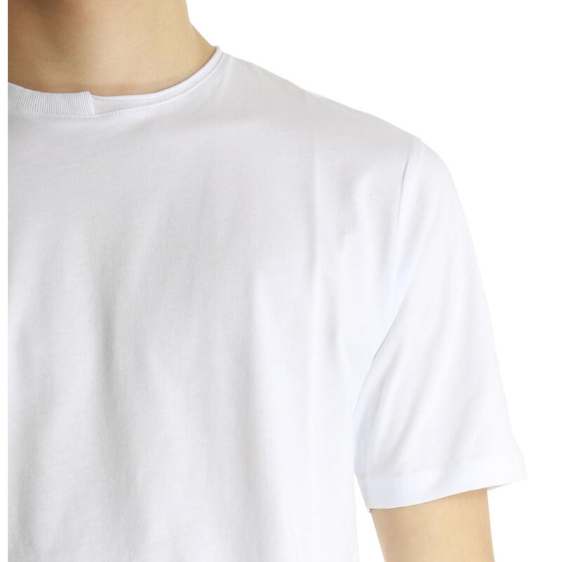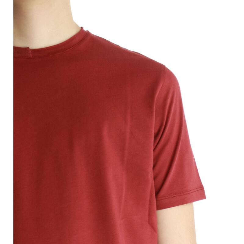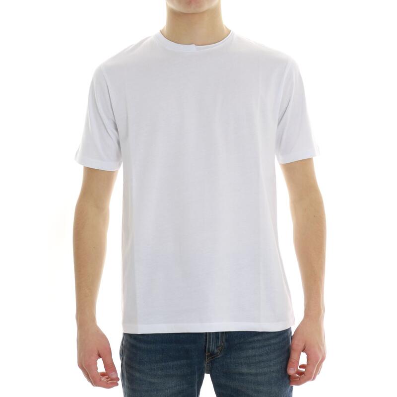 T-shirt mezza manica, girocollo con taglio vivo. Vestibilità slim.