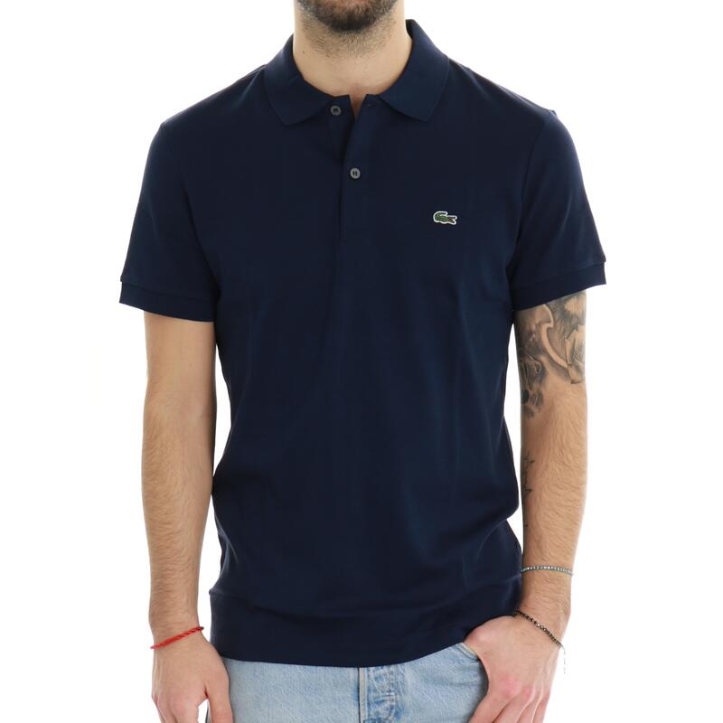 Polo mezza manica in tinta unita con colletto classico, logo ricamato vestibilità slim