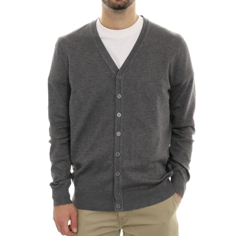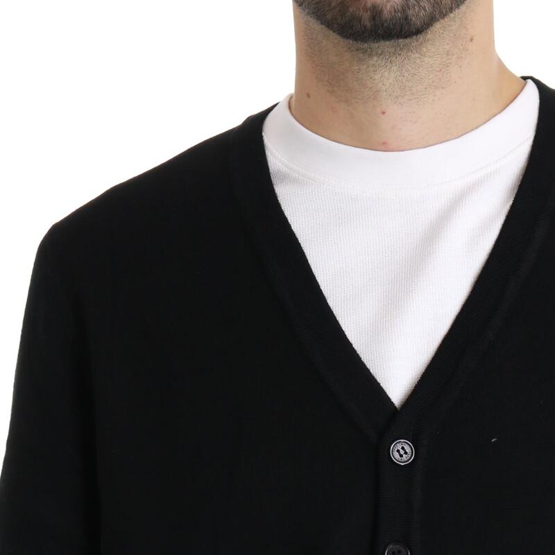 Maglia aperta co bottoni e scollo a V. Vestibilità regular.
