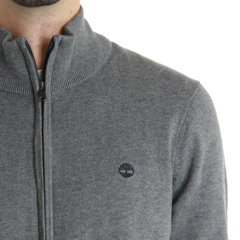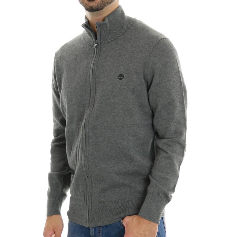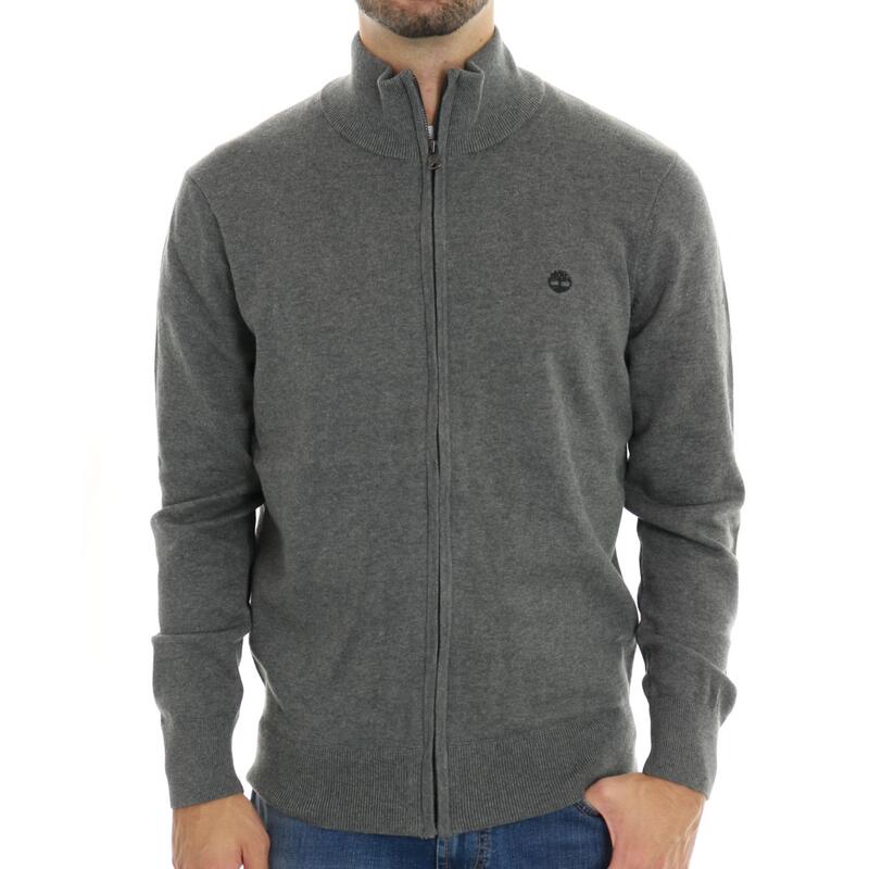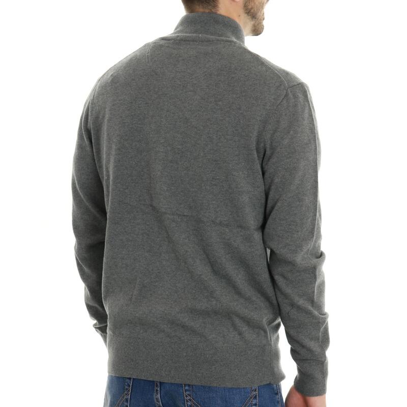 Maglia aperta con zip, collo in piedi, logo ricamato. Vestibilità regular.